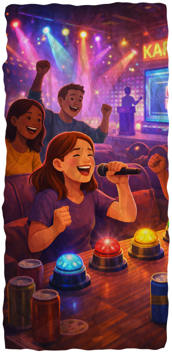 Envie de rire, buzzer, chanter et vous défier dans une ambiance survoltée ? Bienvenue dans la salle la plus festive de Zone 404.